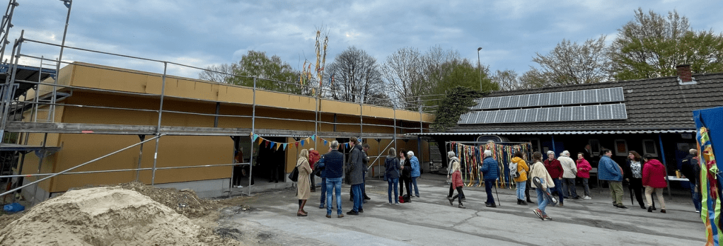 Der Standort unseres künftigen Dorfgemeinschaftshauses kann auf eine lange Vergangenheit als Schulstandort und Dorf-Treffpunkt zurückblicken. Gegründet wurde die Ermelingschule 1843. Ein paar Jahrzehnte später wurde sie als Backsteingebäude erneuert. 1962 entstanden ein moderner Flachbau und eine Sporthalle. Seit 1924 war der Schulhof Schauplatz des jährlichen Wiesenfestes als Schul- und Dorffest, das traditionell immer am letzten Samstag vor der Sommerferien gefeiert wurde.